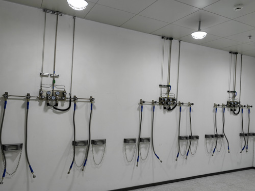 1.氣瓶間內經濟壓力調節器面板開關與檢測陽臺陽光房的氣路終端用戶范圍內備選SS316LBA管展開接,供水管內外表光澤度為Ra<0.4umBA級供水管。